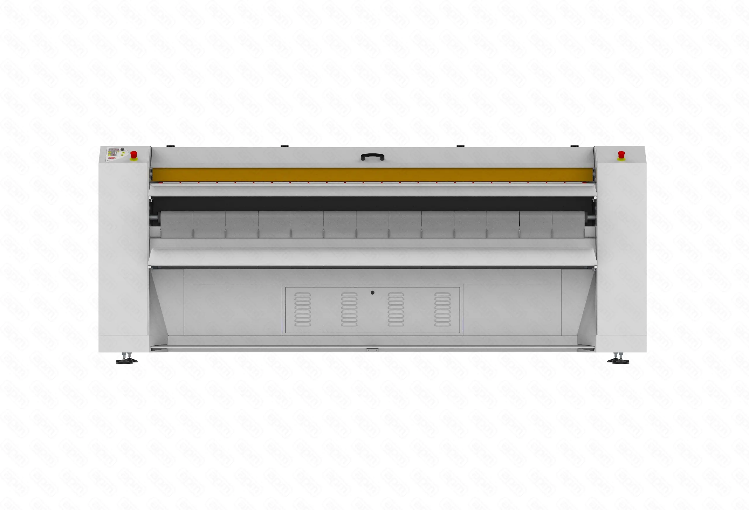 Гладильный каландр для белья с остаточной влажностью 50%. Длина/диаметр вала 2580/500 мм. Комплектация: электрический нагрев, корпус из окрашенной стали, напряжение 380В/3фазы + нейтраль, хромированный вал, гладильные ленты из Meta-Aramid 400g/m2. Подача белья на возврат. Электронный контроль температуры. Охлаждающая система "cool-down". Устройство безопасности пальцев оператора. Алюминиевый стол для подачи белья с удобным встроенным лотком. Система вытяжки пара. Ножная педаль с двойным импульсом. Регулируемая скорость глажения - 1,6-8 м/мин. Производительность - 95 кг/час. Габариты: 3280х750х1290 мм. Мощность нагрева 57 кВт. Напряжение 380 В. Вес нетто 1320 кг.
