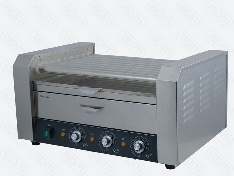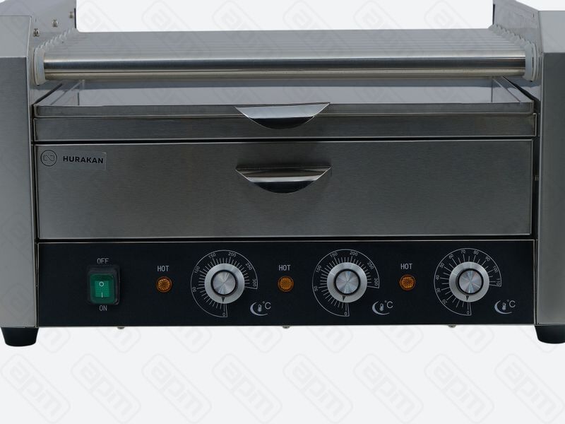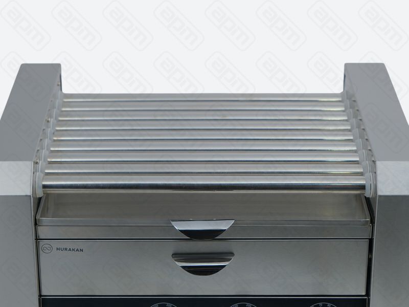 Hurakan HKN-GW9H — эффективный гриль для предприятий общественного питания и торговли, предназначенный для обжаривания сосисок, сарделек и мясных рулетов. Особенность модели — дополнительное отделение для подогревания булочек, что делает её идеальным решением для приготовления хот-догов. Всё оборудование выполнено из нержавеющей стали, что обеспечивает прочность и лёгкую уборку.