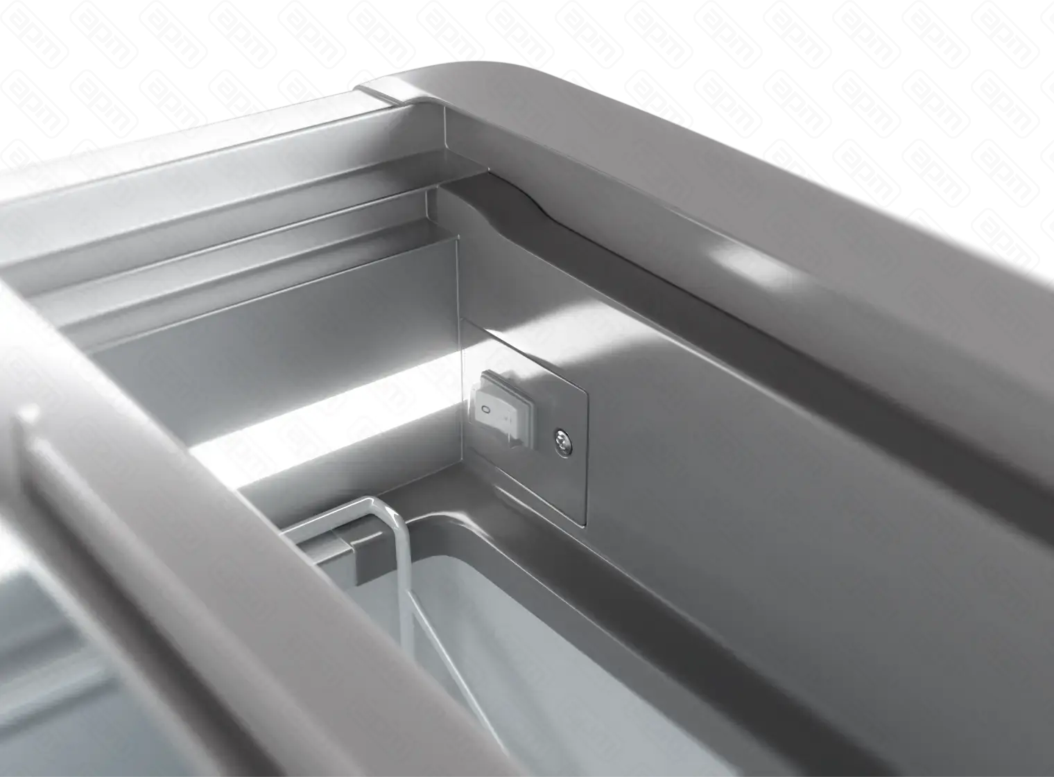 Ларь морозильный Haier SD-336AELUA. Климатический класс 7/ST. Оттайка Ручная. Скребок для разморозки 1 шт.. Хладагент R290. Замок съёмный, металлический. Съёмные корзины (стальной прут с полимерным покрытием) 4. Опорные ножки/колеса: 4 усиленных прорезиненных колеса, 2 из них поворотные. Двери 2, раздвижные с изогнутым закаленным теплоотражающим стеклом. Кабель питания 3 м. Верхняя рамка (корона ларя) комбинированная (формованный ABS plastic + алюминий), встроенная защита от защемления пальцев. Система управления электронная. Испаритель оцинкованная сталь. Конденсатор оцинкованная сталь. Тип дисплея сенсорный. Уровень шума 55 дБ (А). Энергопотребление (кВтч/сут) 1.9. Диапазон температур -25°С…-18°С. Общий объем 331л. Цвет белый. Система освещения: задняя сторона верхней рамы.