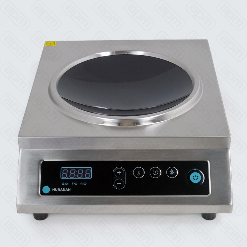 Hurakan HKN-ICW35M WOK — специальная индукционная плита для предприятий общественного питания, ориентированная на приготовление восточноазиатской и китайской кухни. Автоматический запуск при установке посуды и остановка нагрева при её снятии снижают энергорасход и улучшают рабочие условия.
