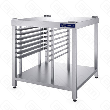 Габариты 800х800х850мм, вместимость GN-1/1 7шт., вместимость противней 600х400мм 7шт., подходит для ПАРОКОНВЕКТОМАТ ЭЛЕКТРИЧЕСКИЙ KAYMAN, материал столешницы, полки и направляющих AISI 304, материал стоек AISI 210. Разборная конструкция. Сплошная столешница позволяет установить любое технологическое оборудование. Стойки выполнены из трубы квадратного сечения 40х40 мм. В нижней части подставки имеется сплошная полка. Углы столешницы заварены и зачищены для обеспечения простоты санитарной обработки и уборки. В верхней части столешницы по углам установлены упоры, предотвращающие случайное падение оборудования во время его эксплуатации. На стойках расположены направляющие для установки гастроемкостей GN 1/1 и/или пекарских противней размером 600х400 мм. Опорные ножки подставки регулируются по высоте для компенсации неровностей пола. Вес 47,5кг.