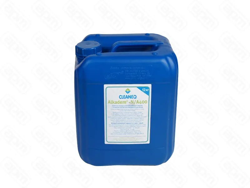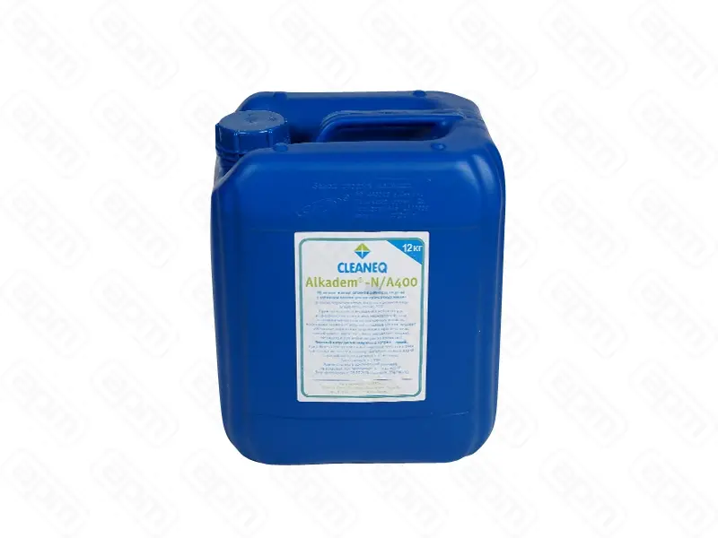 Щелочное моющее ср-во дезинфицирующее с хлором т.м.CLEANEQ серии Alkadem N/A400 для посудом. машин (12 кг). На основе гидроксида натрия, фосфатов и активного хлора ТУ 2381-002-53208249-2002. Применяется для мойки и отбеливания посуды из фарфора, стекла, пластика, нержавеющей стали в автоматизированных посудомоечных машинах в концентрации 2 – 3 мл/л. при температуре 60 – 70°С и промывки трубок систем для розлива пива в концентрации 15 – 30 мл/л. при температуре 20 – 35°С. Обладает высокой моющей и эмульгирующей способностью. Эффективно размягчает и удаляет пищевые остатки, жировые и белковые загрязнения, кофейные и чайные налеты, хмелевые смолы, расщепляет крахмал. Не подходит для мойки посуды из алюминия! Опасный ингредиент: гидроксид натрия – едкий. При работе со средством носить защитные перчатки и очки. При попадании в глаза и на кожу тщательно промыть водой. Гарантийный срок хранения – 12 месяцев. Срок годности – 3 года Хранить только в оригинальной упаковке, не вскрывая, при температуре от –5 до +25°С. Беречь от солнечных лучей. Вес нетто 12 кг. Упаковка: канистра 10 дм3