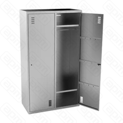 1000х500х1800мм, Шкаф для одежды 2-х секционный (каркас: нерж. сталь aisi 430, 2 двери, 4 полки, 2 перекладины, 4 крючка, 2 замка)