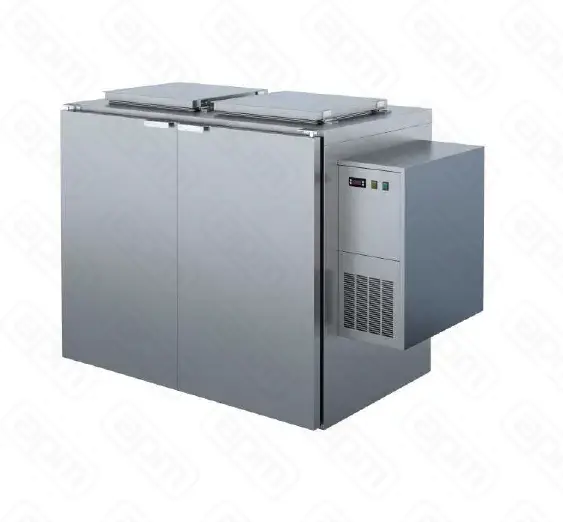 Шкаф холодильный для отходов WTSAVR-DX-1, Встраиваемый холодильный шкаф для отходов выполнен полностью из нержавеющей стали, предназначен для хранения пищевых отходов. Внешние габариты 1070x875x1195 мм, поставляется в разобранном виде. Вмещает 1 контейнер на 120 литров. Дверки выполнены из нержавеющей стали, с углом открытия на 95 градусов. Холодильный агрегат с отложенным размораживанием и автоматическим испарением конденсата. Используемый хладагент - R290.