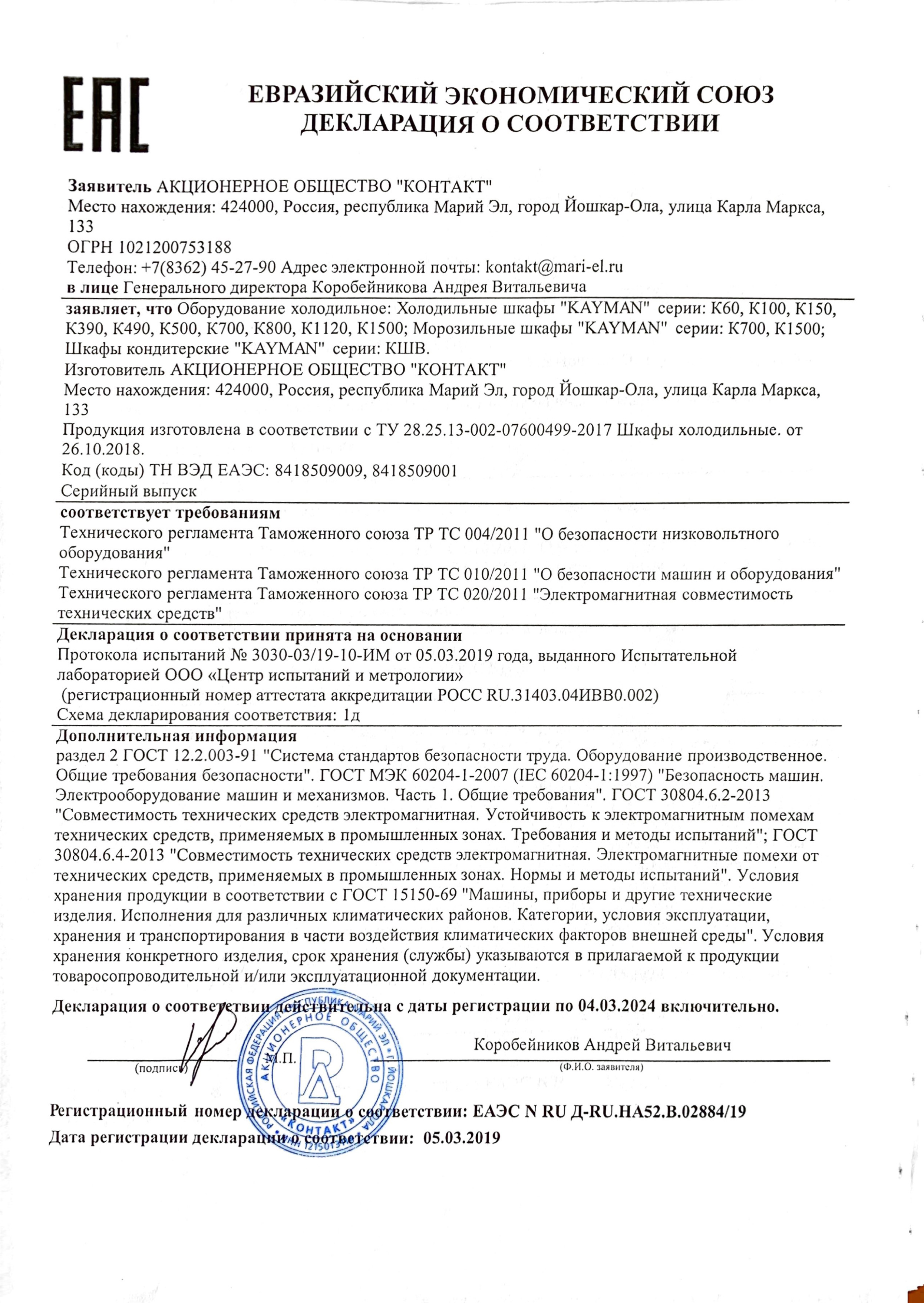 Шкаф холодильный KAYMAN К1120-ХСК КУПЕ СТУПЕНЧАТЫЙ со стеклянными дверями предназначен для кратковременного хранения, демонстрации и продажи, предварительно охлажденных до температуры охлаждаемого объема, пищевых продуктов и напитков. Шкафы с нижним расположением агрегата, даже расположенные за витринами, лучше демонстрируют товар – выкладка в шкафах поднята выше и видны даже нижние полки, что позволяет более выгодно выложить товар с точки зрения мерчендайзинга.