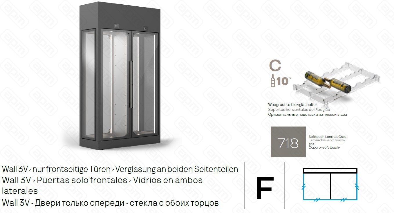 ENOFRIGO WINE LIBRARY 20 3V SX-DX 2P H2600 VT F СЕРЫЙ + ПОЛКИ С предназначен для хранения вина при определенном уровне температуры в ресторанах, специализированных магазинах, отелях, подсобных складских помещениях, в частных домах или квартирах.
