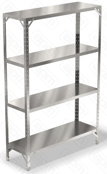 — 4 сплошные полки из нержавеющей стали AISI 430 толщиной 0,5 мм с усилителем