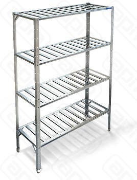 Стеллаж ТЕХНО-ТТ СТР-224/1603 РЕШЕТЧ. предназначен для хранения посуды и инвентаря, а также сухих продуктов на предприятиях общественного питания и торговли. Особенности: