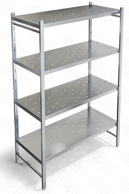 Стеллаж ТЕХНО-ТТ СТР-454/1003 ПЕРФОР. предназначен для хранения посуды и инвентаря, а также сухих продуктов на предприятиях общественного питания и торговли. Особенности: