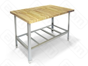 Стол предназначен для работы в кондитерских и мучных цехах. Стол имеет деревянную (бук) столешницу толщиной 40 мм и устойчивый разборный каркас. Ножки стола снабжены регуляторами высоты, что позволяет устранять неровности пола.