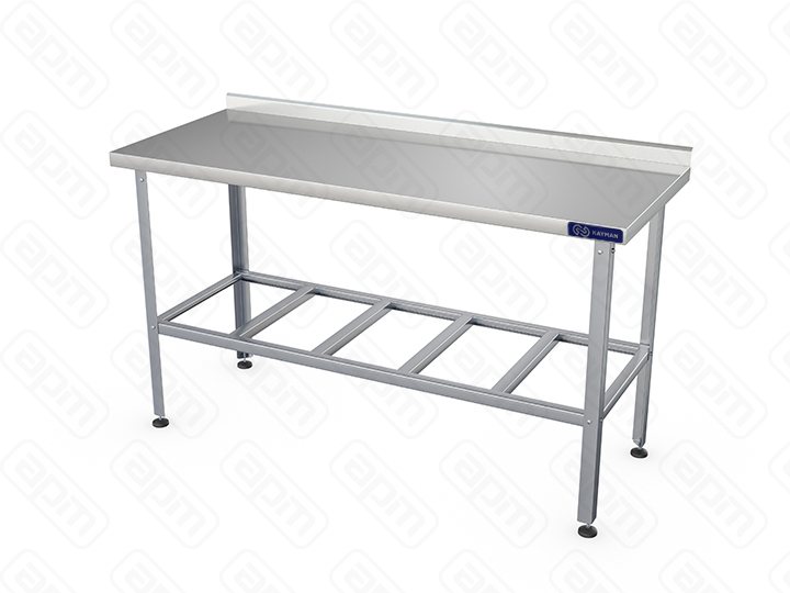 Стол пристенный KAYMAN СП-244/1206-А предназначен для использования на предприятиях общественного питания, торговли, для разделывания и обработки пищевых продуктов, а также в качестве вспомогательной поверхности для кухонного оборудования. Особенности: