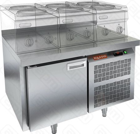 Стол с морозильным шкафом производства HICOLD (Россия), модель SN 1/BT LT предназначен для использования на профессиональной кухне и сочетает в себе функциональность рабочей поверхности и морозильной камеры. Он используется для приготовления и хранения пищевых полуфабрикатов.