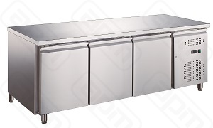 Стол с морозильным шкафом Hurakan HKN-GN3BT предназначен для раскатки теста, обработки ингредиентов для приготовления разнличных блюд. Стол оснащен камерой, предназначенной для заморозки и хранения продуктов и напитков. Морозильный стол обеспечивает надежную работу при высоких внешних температурах, сохраняя свежесть продуктов. Технические характеристики: