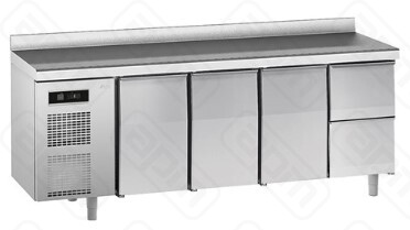 Стол с охлаждаемым шкафом, производства SAGI (Италия) модель KIGC2A, предназначен для использования на профессиональной кухне и сочетает в себе функциональность рабочей поверхности и холодильной камеры. Он используется для приготовления и хранения пищевых полуфабрикатов. Особенности: