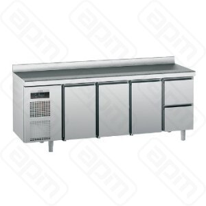 Стол с охлаждаемым шкафом, производства SAGI (Италия) модель KUC2A, предназначен для использования на профессиональной кухне и сочетает в себе функциональность рабочей поверхности и холодильной камеры. Он используется для приготовления и хранения пищевых полуфабрикатов. Особенности: