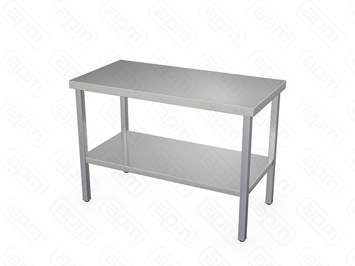— Сплошная полка стола выполнена из нержавеющей стали и крепится болтами на каркасе.
