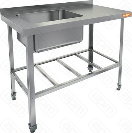 - Материал каркаса: оцинкованная сталь - Толщина каркаса: 0,8 мм - Тип каркаса: уголок 40 х 40 мм - Материал столешницы: нержавеющая сталь AISI430 - Толщина столешницы: 1 мм - Тип столешницы: усиленная ребрами жесткости - Высота рабочей поверхности: 850 мм - Ванна слева - Размеры ванны: 500 х 400 х 250 мм - Распределенная статическая нагрузка на полку: 50 кг - Отступ под коммуникации: 25 мм - Высота борта: 50 мм