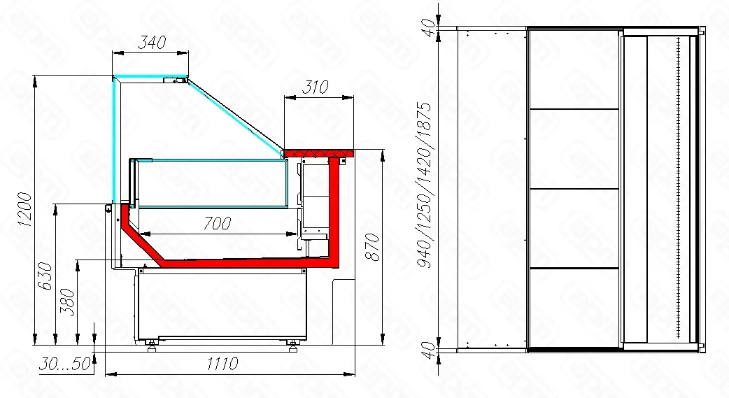 Витрина холодильная GC110 SL 1,5-1 (с боковинами) (0011-9006)